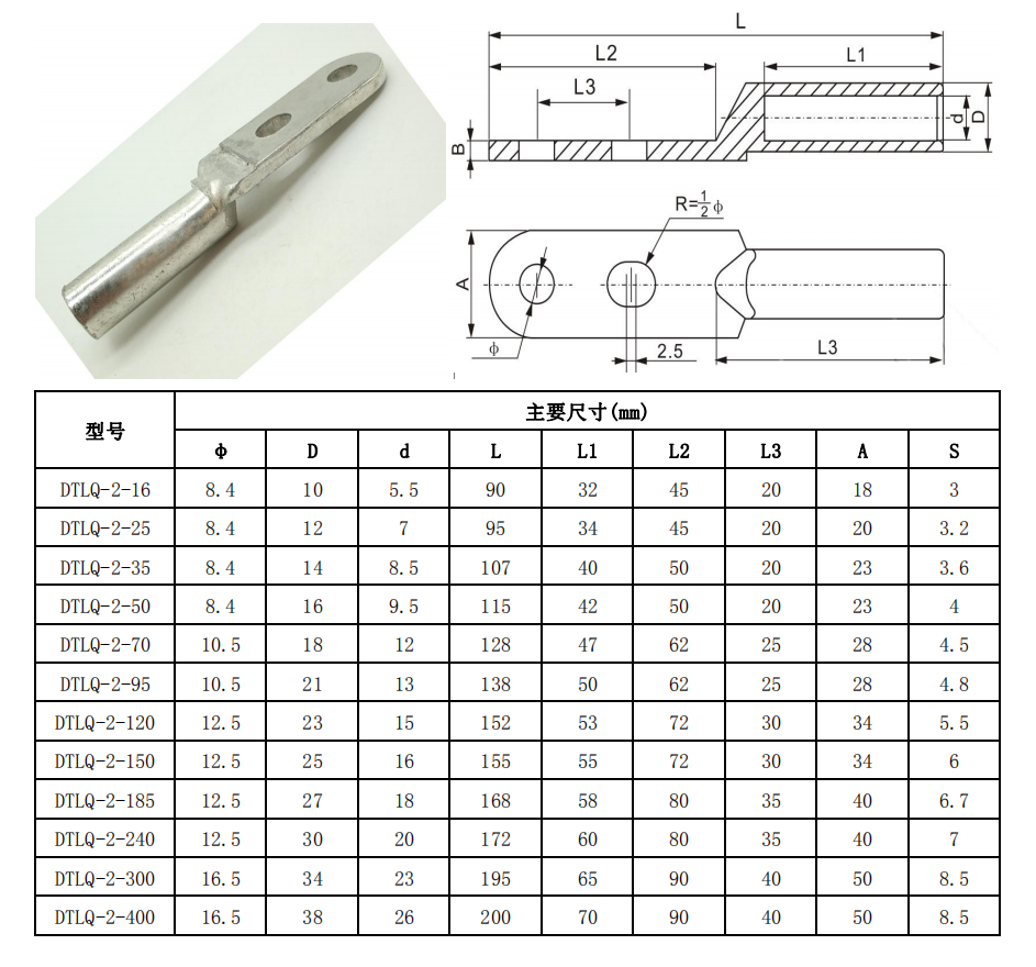 DTL2-Q釬焊雙孔銅鋁端子