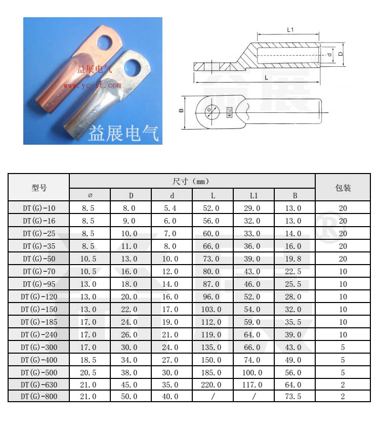 | DT(G)適用于配電裝置中電線,電力電纜與電器設備的連接。采用(T2)銅管料壓制,表面鍍錫。
