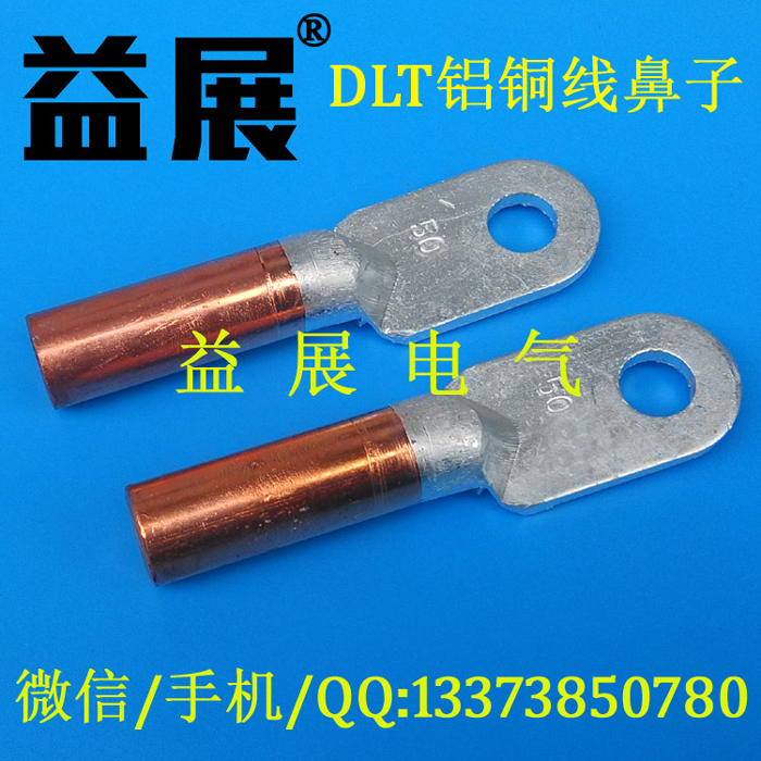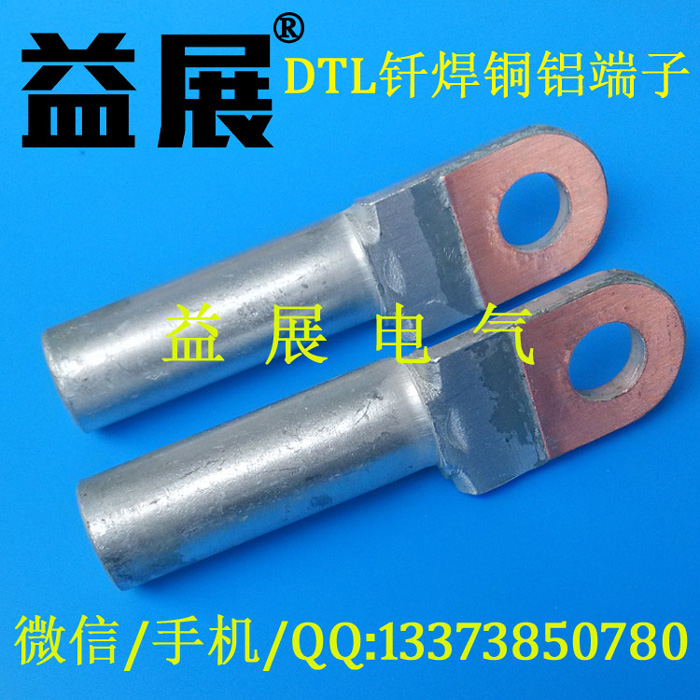用途 :DTL系列銅鋁接線端子適用于配電裝置中各種圓型,半圓扇型鋁線,電力電纜與電氣設備銅端的過渡連接。使用鋁材為L3,銅材為T2。產品采用磨擦焊工藝制造,具有焊縫強度高,通電性能好,抗電化腐蝕,使用壽命長等等特點。