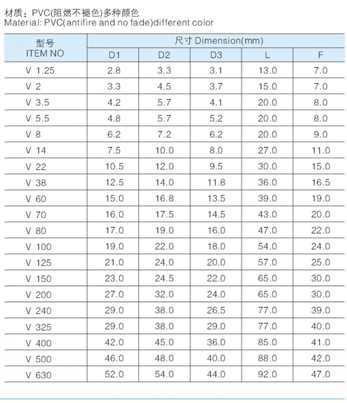 PVC軟絕緣護套,軟護套,絕緣護套,冷壓端子軟護套 技術參數: 溫度范圍:<105℃ 額定電壓:300V AC/DC 額定電流:8-15A 接觸電阻:≤0.01Ω 絕緣電阻:≥4MΩ 阻然性:ULVW-1(FV-0) 材料:殼體(Housing):聚氯乙烯(PVC)UL94V-0
