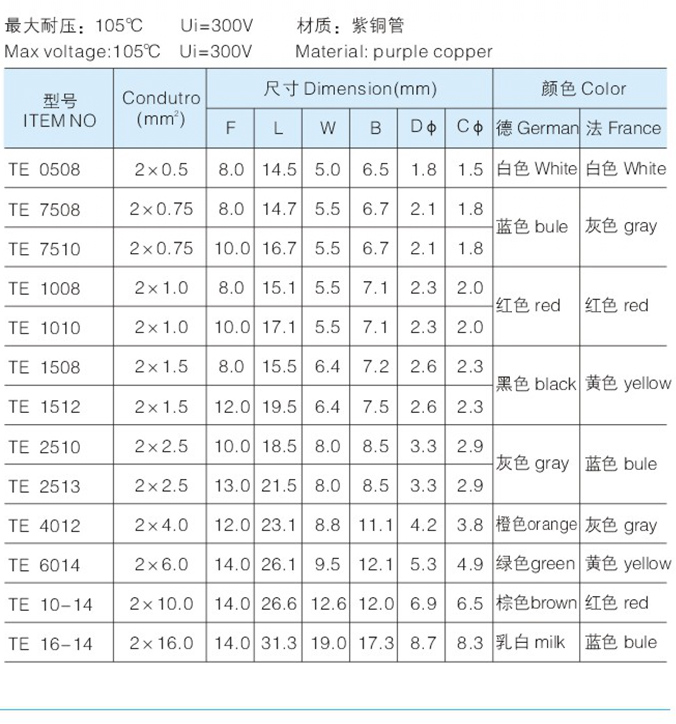 TE雙線管型預絕緣端子 Home您現在的位置:網站首頁 >> 產品中心 >> 冷壓端子