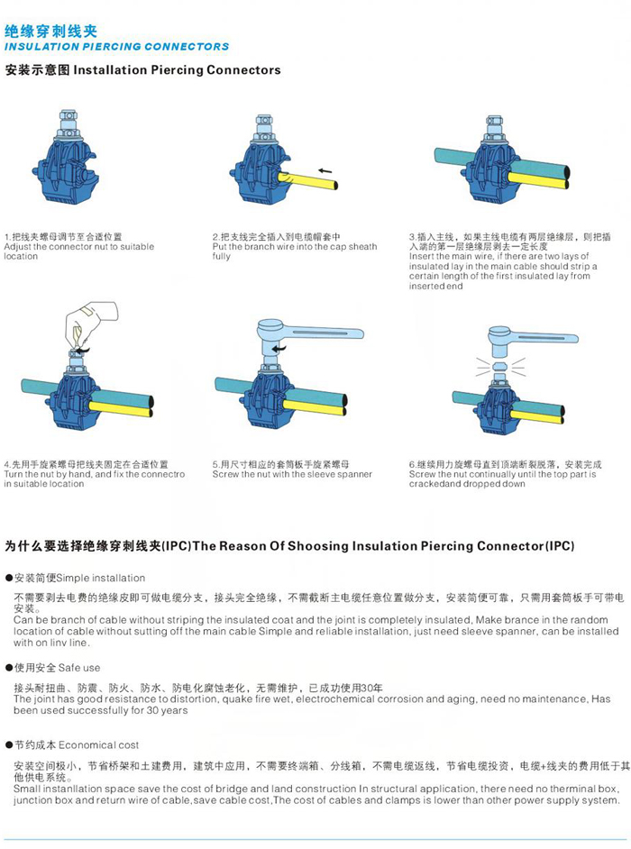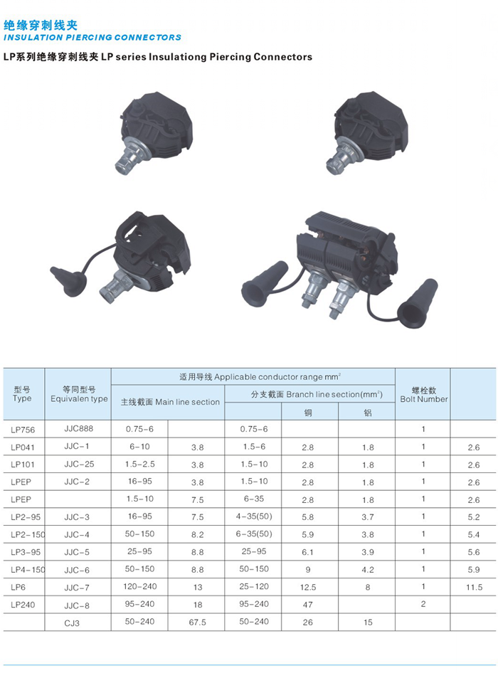 絕緣穿刺線夾,絕緣性能好。使用了特殊絕緣殼體,能抗光照及環(huán)境老化,有較高的絕緣強度。一定條件下,適應(yīng)帶電作業(yè)。